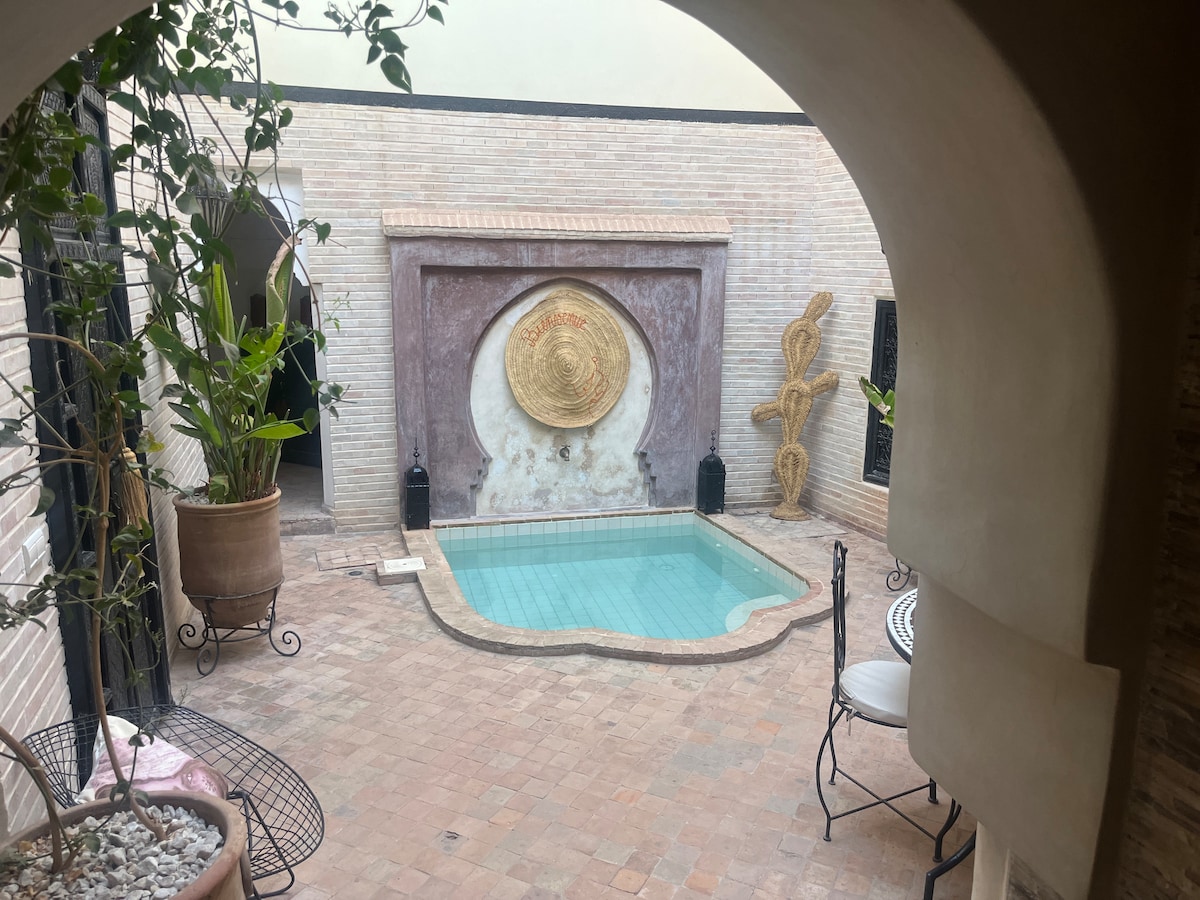 Auténtico Riad renovado, muy fácil acceso , gran patio con Bhou y piscina . Situado en una zona típica, segura y muy comercial a 3 minutos a pie de la entrada de los zocos junto al Jardín Secreto, el Museo de la Mujer … y a menos de 20 minutos a pie de los jardines de Majorelle y a 30 minutos del barrio del Gueliz. El imprescindible mercado de Bab Doukala se encuentra al final de la calle. Malika y Samad estarán a su disposición para sus traslados, excursiones, desayunos, cenas u otros.