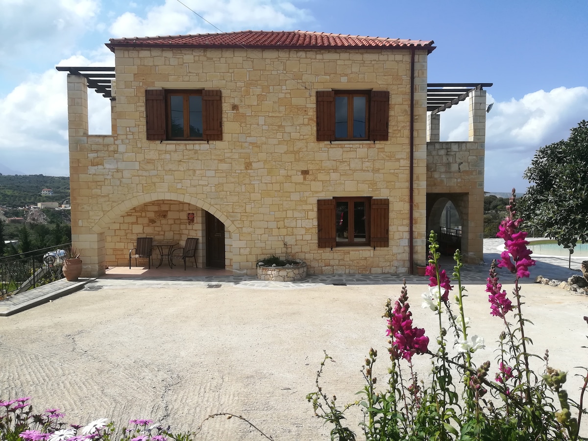 Hera es una villa de piedra exclusiva de 2018, parte de Rhea-Residence punto com, con 3 casas, Hestia y Rhea, todas totalmente privadas entre sí. La casa está en Gavalochori, un hermoso pueblo, a 35 minutos en coche de La Canea y a 3,5 km de la playa en Almyrida. La villa tiene vistas impresionantes a las montañas blancas, pueblos y al mar. La villa es ideal para unas vacaciones románticas de lujo para dos o una pequeña familia.