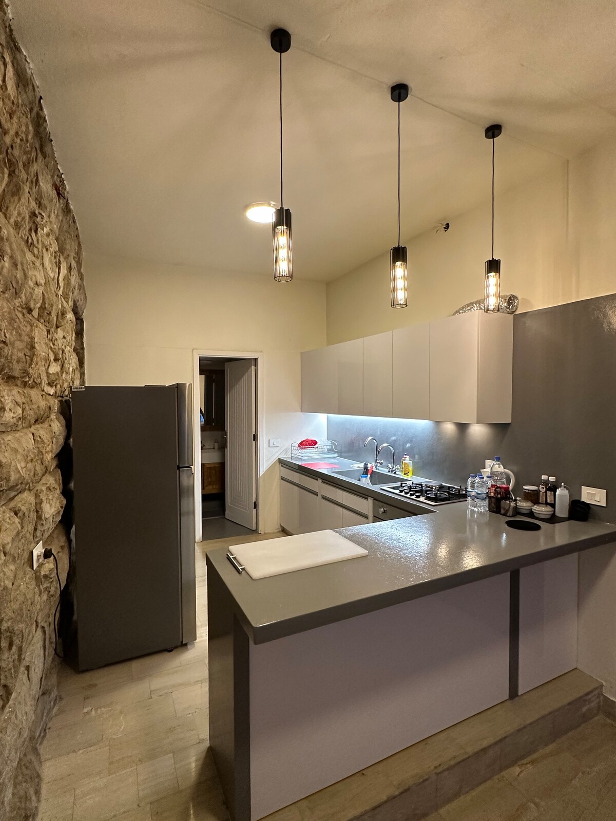 Stay in the heart of Batroun’s vibrant Old Souks in this luxury designer suite featuring a private indoor jacuzzi. Surrounded by cafés, restaurants, nightlife, and historic streets, everything is within walking distance. The space blends authentic Lebanese stone architecture with modern comfort, offering a king-size bed, cozy lounge area, Smart TV, Wi-Fi, AC, and a semi-equipped kitchenette for a stylish and relaxing getaway.