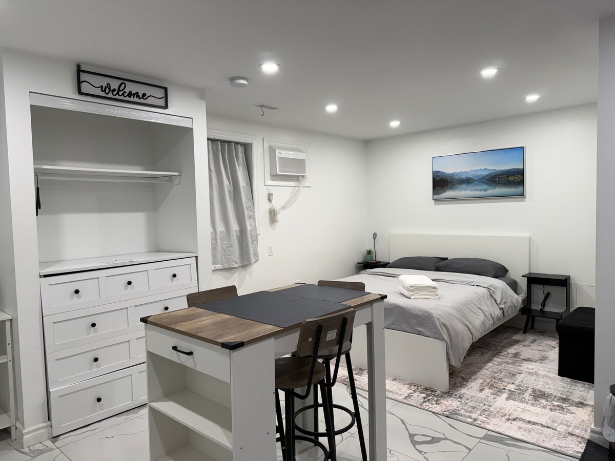 Amplio apartamento moderno de 1 dormitorio + estudio ubicado en el corazón del centro de la ciudad. A pocos pasos del lago, parques y centros recreativos. A pocos pasos de la Torre CN, Union Station, Rogers Center y del Centro de Convenciones. → WIFI RÁPIDO perfecto para teletrabajo, videollamadas y streaming Tamaño → aproximado 620 pies cuadrados / 57 m² Espacio de trabajo→ dedicado. Televisor QLED de→ 60 pulgadas. → *NUEVO 2024* Cocina totalmente equipada con juego de utensilios de cocina. → A poca distancia a pie de restaurantes y opciones de vida nocturna. A pocos→ minutos de tiendas de comestibles, licorerías y la red de transporte público de la ciudad (puntuación de tránsito 94).