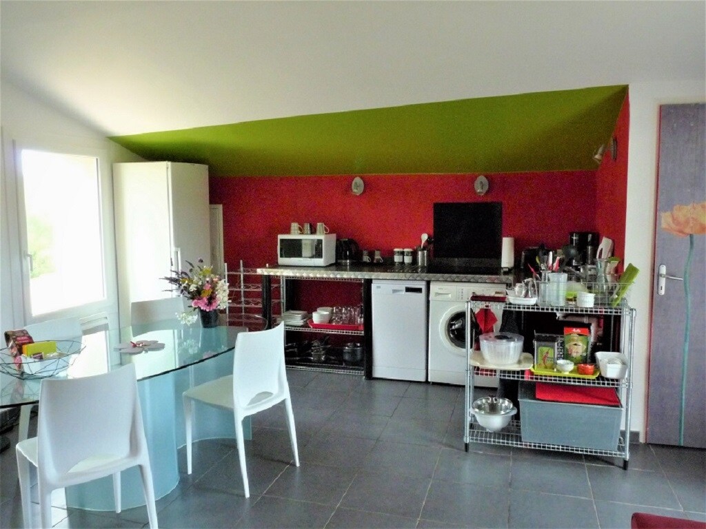 Le studio est aménagé dans une ancienne cave entièrement refaite à neuf équipé d’une clim réversible. Un salon cuisine dans lequel se trouve un canapé convertible, une chambre avec un lit et une salle de bain équipée avec WC. Un accès piscine est également disponible (uniquement l’été : piscine non chauffée) Le studio fait partie de notre maison, nous vivons donc au-dessus du logement mais restons discret et disponible durant votre séjour. Un adorable chien vit dans l'enceinte de la maison.