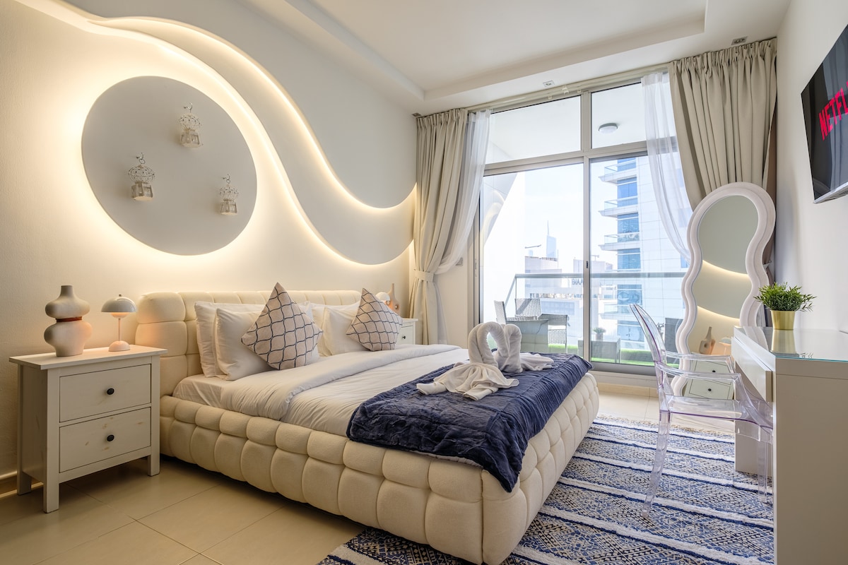 Disfruta de una estancia especial en este amplio y elegante apartamento tipo estudio en el puerto deportivo de Dubái. Da un paseo hasta la playa en JBR, cena en docenas de restaurantes a pocos minutos a pie o disfruta de las vistas del atardecer de la playa y JBR desde el balcón. El apartamento cuenta con una cómoda cama tamaño king y un sofá grande. La cocina está totalmente equipada con todos los elementos esenciales.