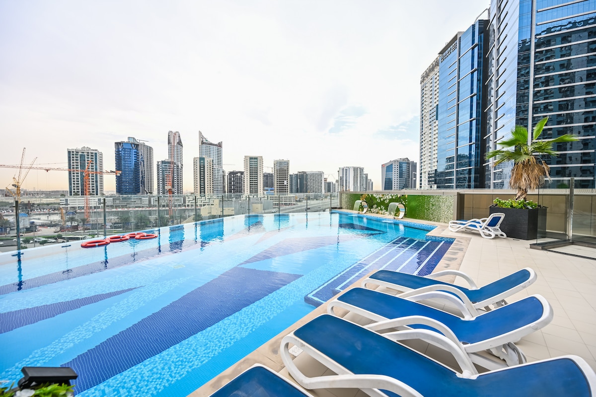 Magical Apt with Rooftop Pool & Burj Khalifa View!