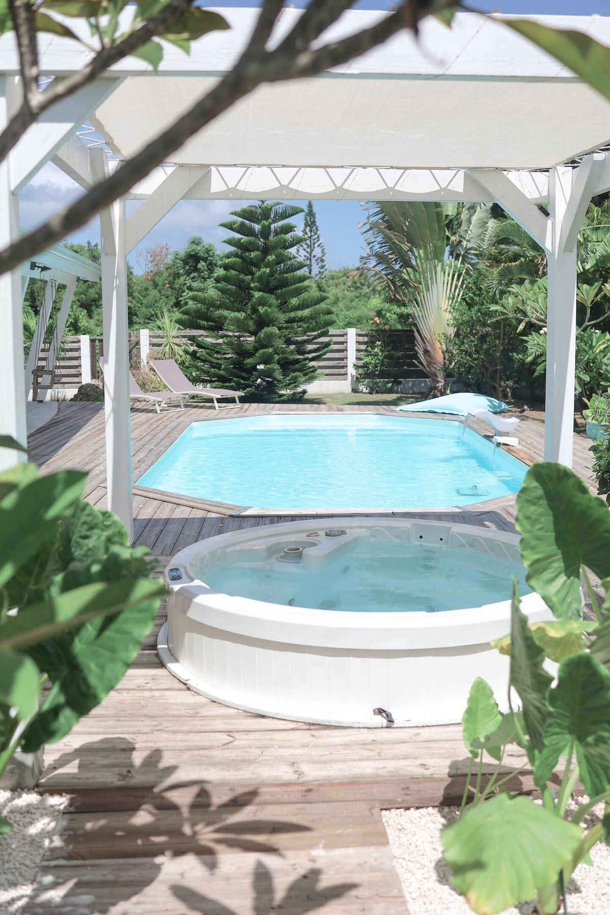 Hidden away in the heart of the countryside, not overlooked, this 40m² loft, embellished with its private pool and deck, offers you an exceptional experience in a quiet and natural environment. Tastefully decorated and equipped with dream amenities, ideal for relaxing and enjoying the green setting. Our concierge will be delighted to make you discover the riches, unusual corners of our island and reserves for you to discover on site for a tailor-made and unforgettable stay!