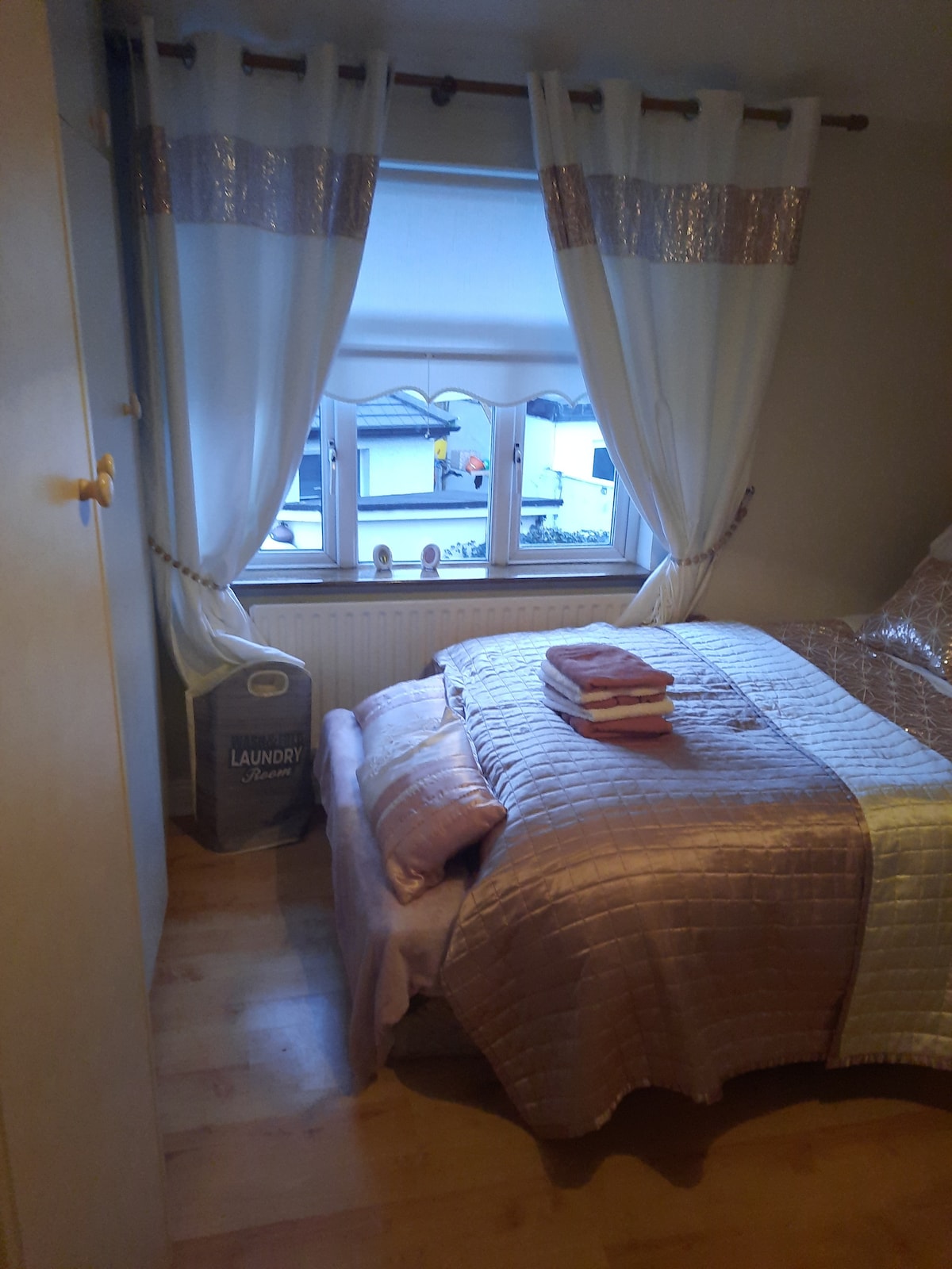 Dormitorio doble grande, luminoso, moderno y espacioso (cama de 5 pies), hermoso baño privado. Muy privado. Entrada propia. Caja de seguridad. Aparcamiento privado. Situado en un callejón sin salida tranquilo. A 20 minutos del aeropuerto. Cerca de la M50 y el Luas, excelente servicio de autobús al centro de la ciudad (parada de autobús a 5 minutos del estudio). Contiene nevera/congelador, microondas, hervidor de agua, tostadora, secador de pelo, plancha y tabla de planchar. Se ofrece desayuno continental. Sky TV, NETFLIX y wifi. Cerca del pueblo con supermercados, pubs, restaurantes y comida para llevar.