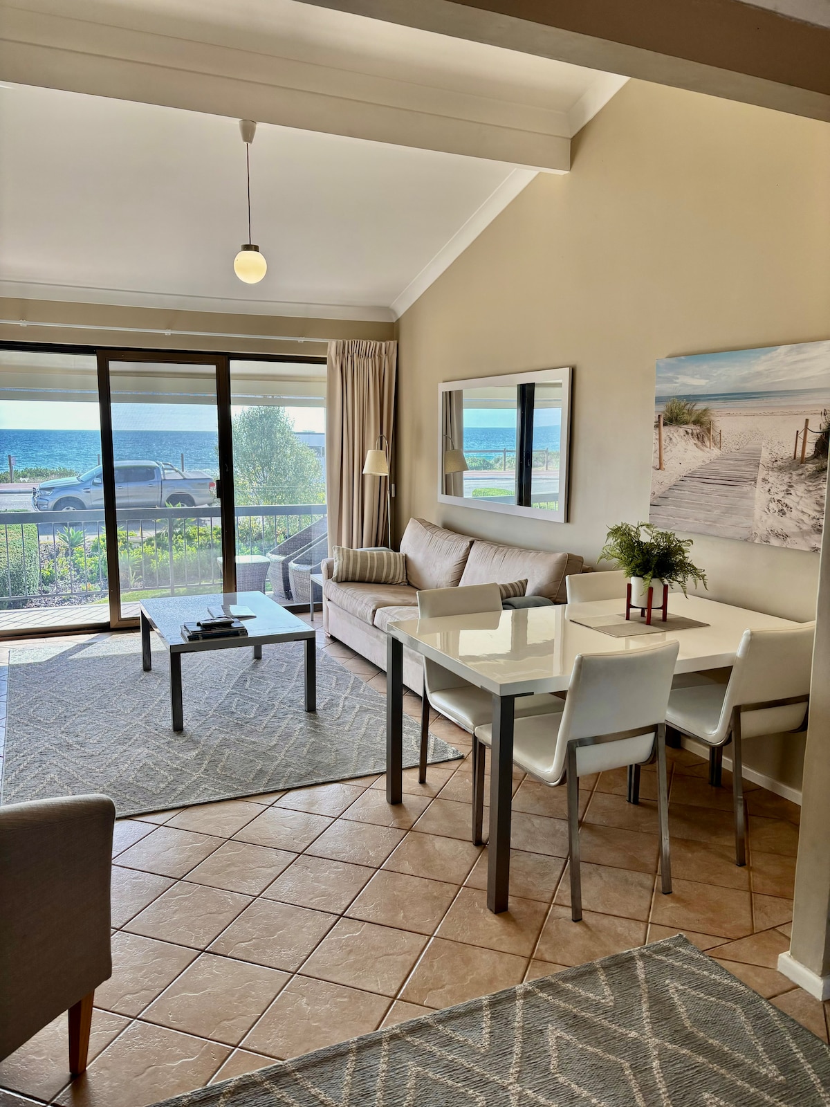 The beach is directly across the road and it's beautiful! Come and enjoy this gorgeous apartment and listen to the ocean as you drift off to sleep. Put your feet up & relax on the deck or go for a beach stroll and watch the sunset. It's magic! Snorkeling, fishing, swimming or surfing is just a few steps away. Spot the local dolphins and 1min walk you will find a picturesque grassed picnic/beach area and a playground & Todds cafe. Discount rates available for 1-3 month stays.