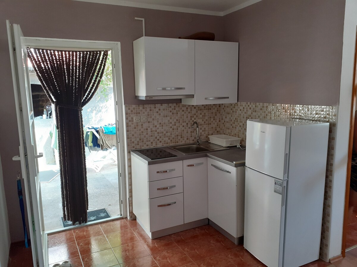 Apartamento tipo estudio de lujo con cocina, baño, TV y aire acondicionado ideal para dos personas. Aparcamiento gratuito incluido. La estación de autobuses, el puerto de Gaženica y el centro de la ciudad están a 5 minutos en coche. La playa se encuentra a 300 metros del apartamento.