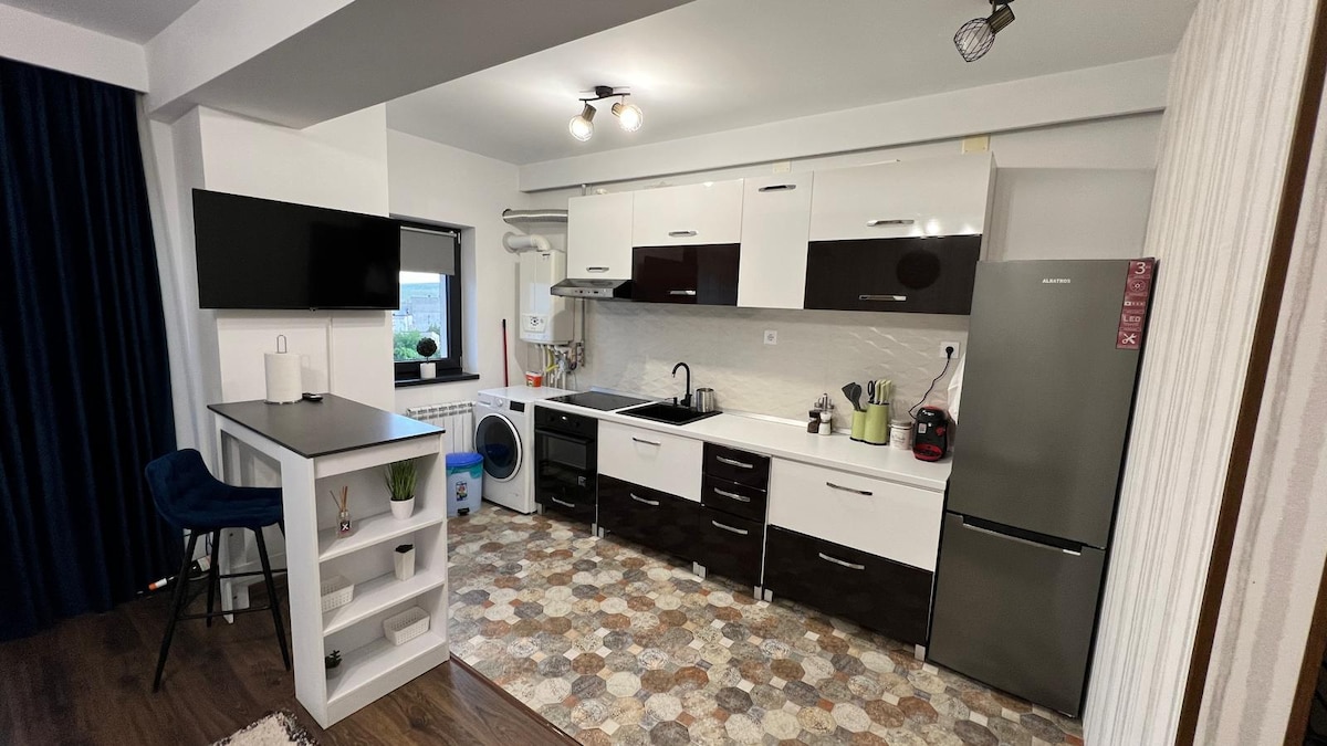 Apartament modern cu 1 dormitor si living open space Pat matrimonial si canpea extensibila Blocul are Lift si parcare privata cu bariere. Aproape de centrul orasului si de centrul comercial aproape de murighiol 33 km Dunavatu de jos 39 km