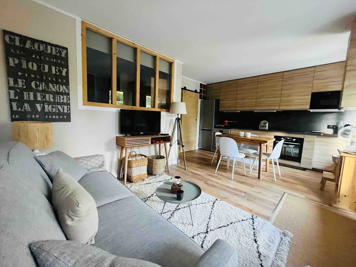 Apartamento de 2 habitaciones, 39 m2, muy luminoso, totalmente renovado, cerca de las playas de la bahía y el océano, pueblos de ostras, carriles bici, tiendas. Situado en una pequeña residencia de una sola planta, el apartamento, en la planta baja, consta de un dormitorio con cama de 140, un salón con sofá cama de 140, una cocina abierta totalmente equipada con lavavajillas, una terraza con vistas al jardín de la residencia. Aparcamiento exterior. Se proporcionan sábanas y toallas.