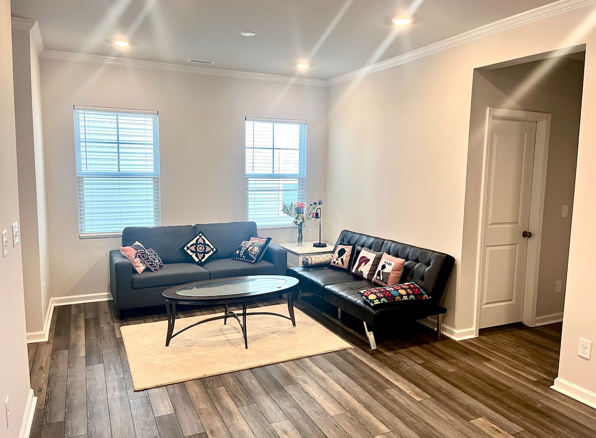 Welcome to our Private Luxury Master Suite! Enjoy a hotel-like experience with a spacious luxury bath featuring double sinks and a rain shower and a beautiful private deck with a peaceful view. We also include a coffee bar, work area, Wi-Fi, and TV. Conveniently located from RDU Airport and Downtown Durham, with a variety of restaurants and coffee shops nearby. Experience the perfect blend of comfort, luxury, and convenience in this upgraded suite! Parking is available and limited to 1.