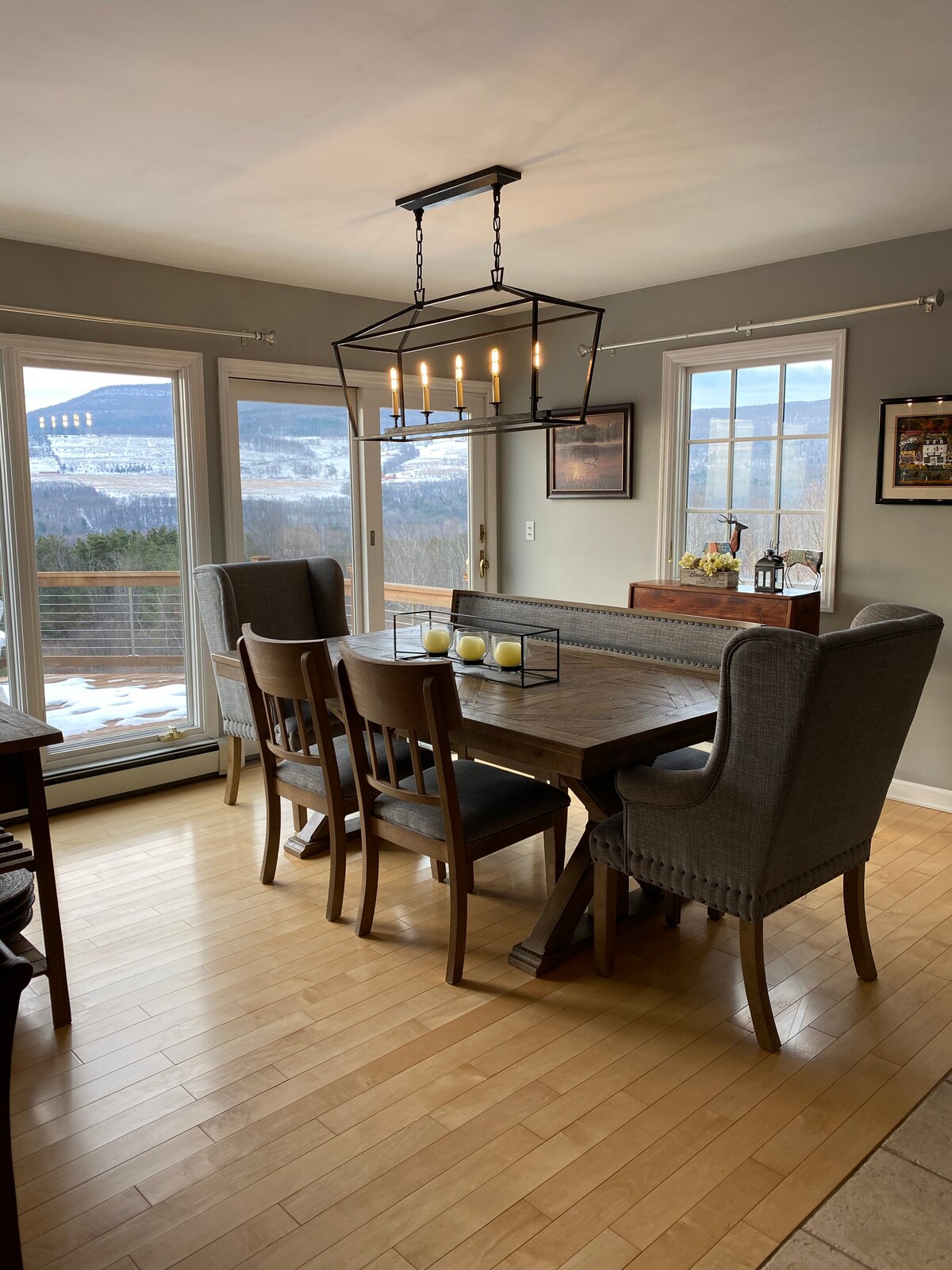 This pristinely-kept vacation home has endless mountain views on rolling country acres. Come and stay just to get away, enjoy both the sunrise and sunset views from the expansive deck. Curl up by the wood burning fireplace or the outdoor fire-pit, or take a sunset plunge in our backyard hottub and enjoy the picturesque views of Windham, NY from across the valley. A serene 8 mile drive will take you into the historic Town of Windham, NY to enjoy a day of skiing, site-seeing, hiking or dining