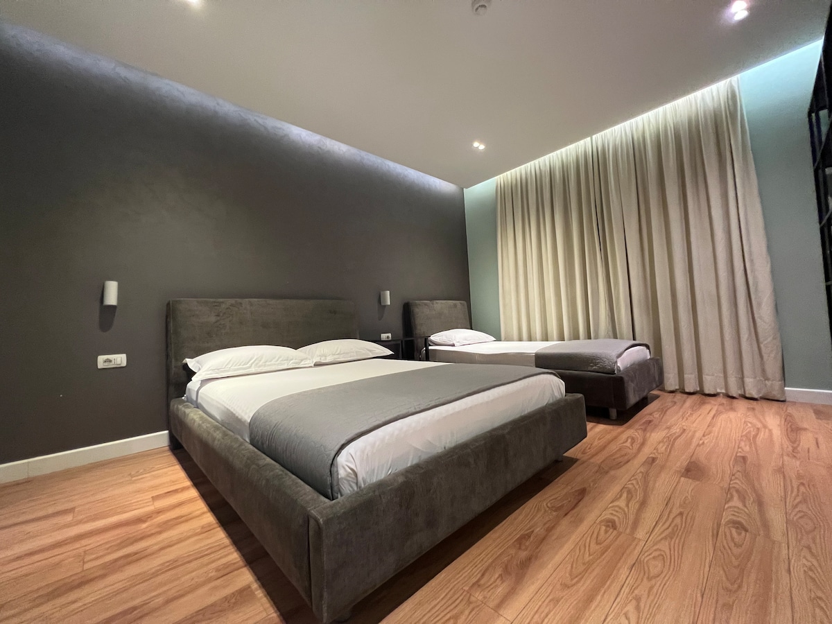 Disfruta de la sencillez de este alojamiento tranquilo y céntrico. En el corazón de Tirana, a solo unos minutos del centro, podrás disfrutar de la hermosa vista, de la tranquilidad y de la paz junto con la experiencia de la capital, todo en uno. Perfecto para parejas que quieran pasar un rato increíble y cómodo juntos. El moderno apartamento y edificio y todos los detalles cuidados hacen que tu estancia sea cómoda y lujosa. ¡Todos son bienvenidos!
