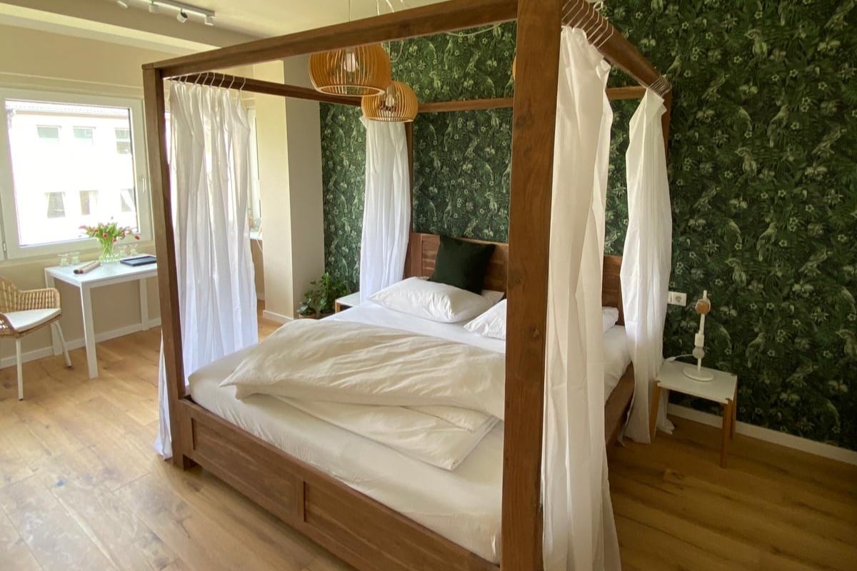 Ein Zuhause für dich - im Herzen von Düsseldorf wenige Minuten zur Kö und Altstadt. Alles NEU. In der Nähe befinden sich zahlreiche Restaurants und Cafés, Supermärkte und diverse Shops. So lebendig und stilvoll wie unsere Stadt ist auch dieses Apartment. Ein Wohnschlafbereich mit einem romantischen Himmelbett, eine großzügige Küche (vollausgestattet) und ein Bad mit Regendusche sind neu für Euch designt.