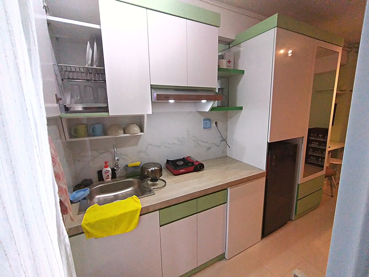 Clean Bed Sheets for every new guests, 2 BR Apartment, All in One, All you need is here: Cable TV, WiFi, Kitchen, Aqua, Coffee, Tea, Amenities, Information, Commuter Station, Taxi, Grab, Gocar, Mall/ Super Market/ Indomaret, Resto/ Cafe, Bank/ATM, Laundry, Gym, Swimming Pool, Jogging, Tennis, Basket, Clinics/ Medicine, etc.