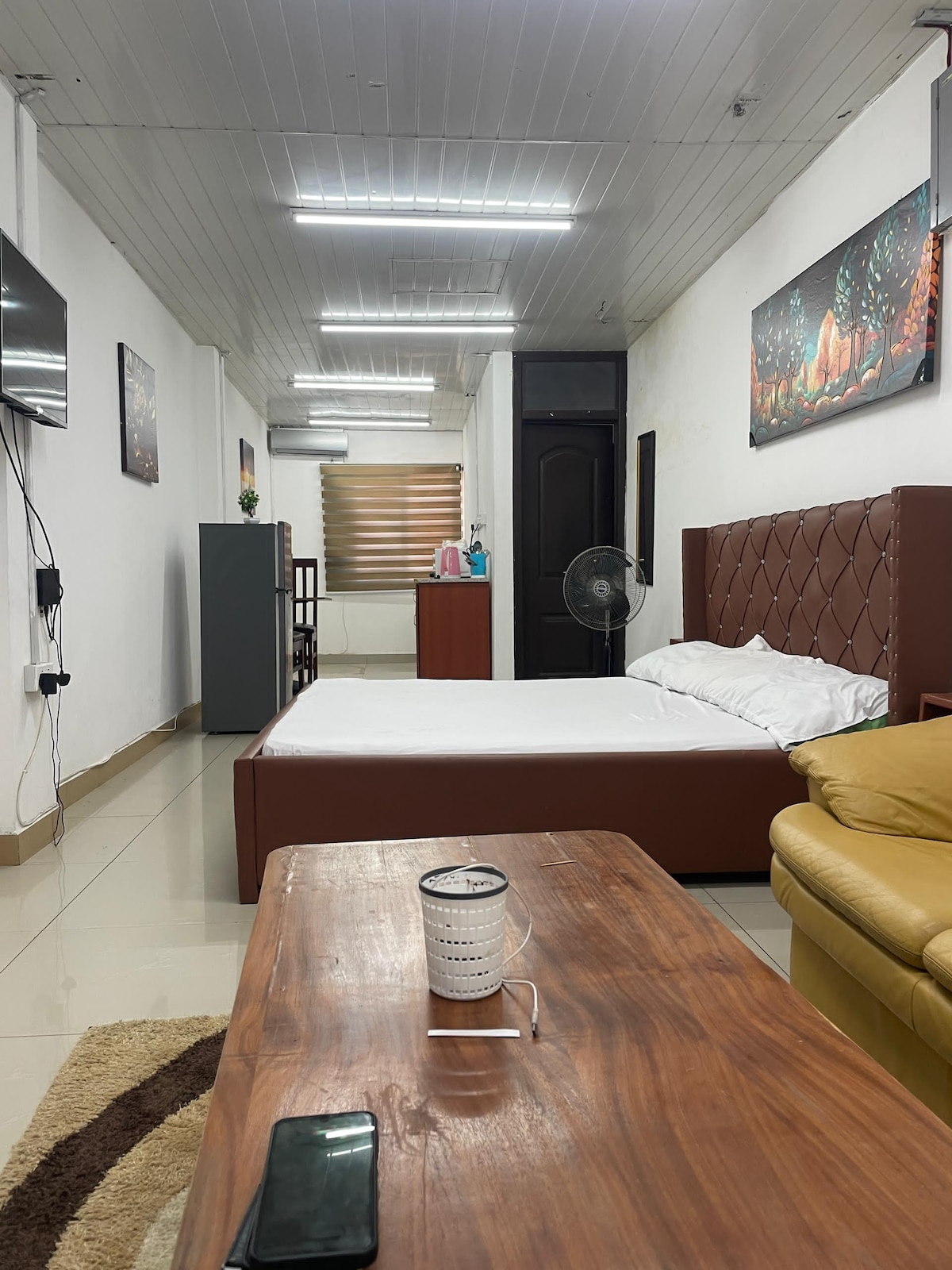 Sencillo en este lugar tranquilo y céntrico a solo 4 minutos del Aeropuerto Internacional de Kotoka (KIA). El estudio viene con: - Wifi gratuito y rápido (velocidades de más de 60 Mbps) - Televisión inteligente con Netflix y DSTV - Una cama grande y cómoda para 2 adultos. - Acceso exclusivo a la piscina en la azotea. - Lavarropas y secarropas en la unidad - Aparcamiento gratuito. - Gimnasio en las instalaciones. - Cafetería en el lugar. - Balcón privado con vista al jardín. - Seguridad las 24 horas y circuito cerrado de televisión - Acceso personalizado de seguridad con huellas dactilares al desarrollo de The Lennox.