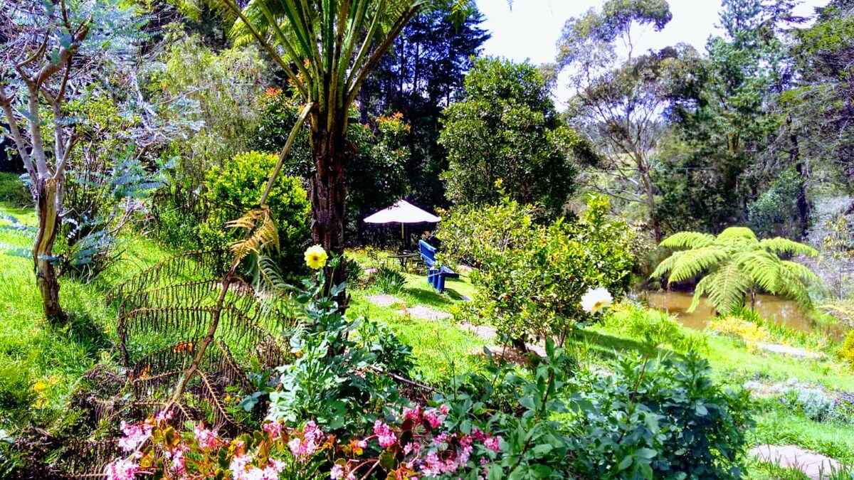 Hermosa cabaña rustica rodeada de un bosque de pinos, totalmente equipada y con capacidad para 6 personas. La finca cuenta con amplias zonas verdes, con hermosos jardines y un lago, la cabaña cuenta con 2 niveles, en el primer nivel se encuentra una habitación con 1 cama doble, sala, comedor, cocina, deck y 1 baño. En el segundo nivel se encuentran las otras 2 habitaciones cada un de ellas con una cama doble y una sala de estar o estudio con escritorio entre las 2 habitaciones.