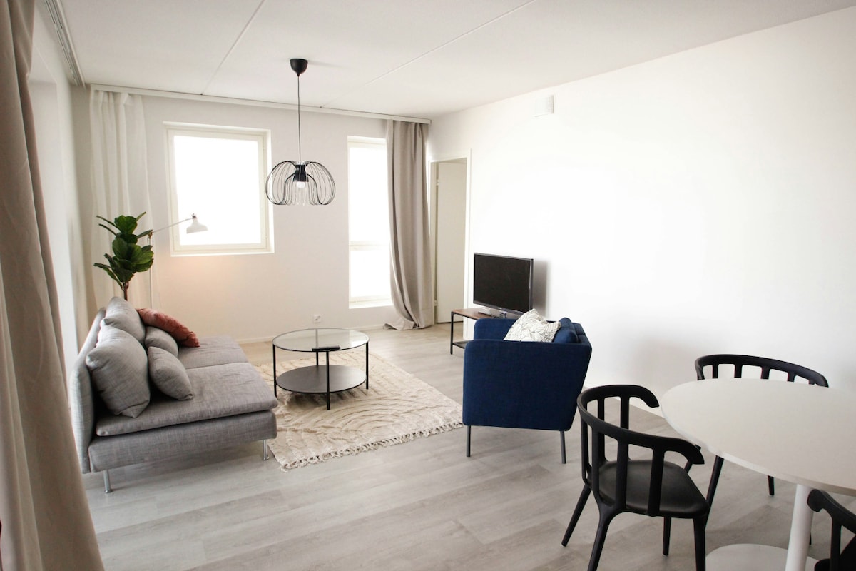 Un apartamento de dos habitaciones cuidadosamente renovado a partir de 2021 en una ubicación excelente en Varkaus, cerca de todos los servicios. - Elegante departamento pequeño de dos habitaciones de 35 m2. - Balcón grande. - mostrador de computadoras - Estacionamiento gratuito (también para vehículos grandes). - Wifi rápido. - Patio tranquilo - Gran terraza compartida de 55 m2 y parrilla en el patio. - Ropa de cama y toallas blancas de alta calidad -> Tienda de comestibles a 1 min -> Restaurantes 1 o 2 minutos -> Navitas, Andritz y Stora Enso a 5 min ★ “Llegada fácil. Departamento acogedor y limpio en una ubicación perfecta”
