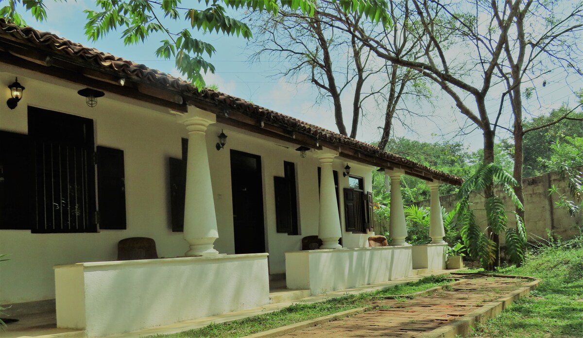 Nuestra habitación doble en Eagle Resort es un hermoso espacio situado alrededor de un jardín tropical en el animado pueblo de Arugam Bay. La amplia habitación cuenta con ventilador o aire acondicionado, escritorio, espacio para colgar ropa y baño privado. Despierta con los sonidos de los pájaros srilanqueses. Disfruta de un café fuera de tu cabaña, come en la fresca zona comunitaria y date un capricho con una gran cantidad de deliciosos restaurantes a la vuelta de la esquina.