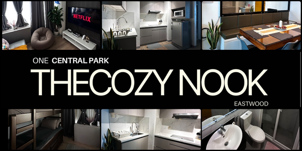 Situado en el corazón de Eastwood City, este moderno apartamento de 1 dormitorio ofrece una estancia elegante y cómoda para un máximo de 4 huéspedes. ✔ Zona de trabajo privada + escritorio ✔ Wifi rápido y fiable ✔ Múltiples piscinas (regazo, infinito, fitness) ✔ Gimnasio, sauna y salas de masajes Zonas de juego ✔ interiores y exteriores ¡Perfecto para personas que viajan solas, viajes de negocios, parejas o familias pequeñas!