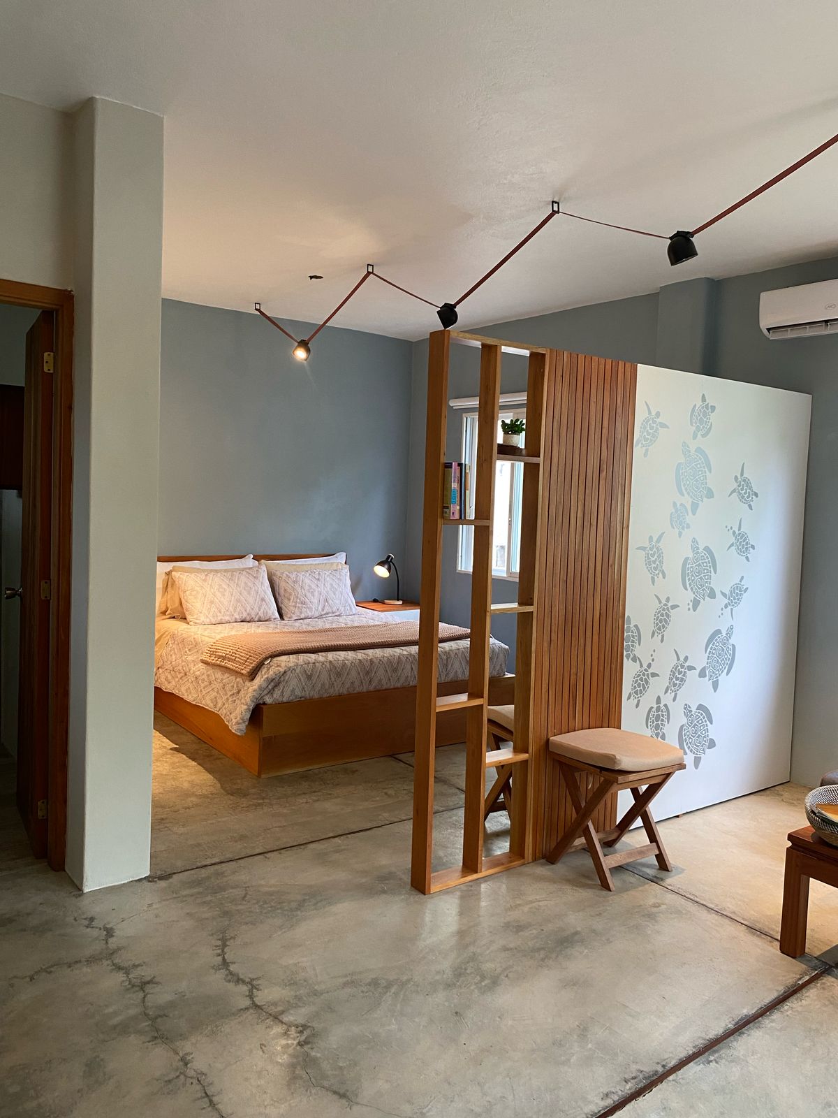 Sumérgete en el relajante entorno de Oloncito en esta casa de 2 pisos recién construida, a 1 minuto a pie de la playa. La unidad está llena de electrodomésticos modernos, incluyendo 2 unidades de aire acondicionado, cocina, nevera/congelador, cafetera y microondas. Disfruta de duchas refrescantes en la estructura de vidrio abierta. El barrio es tranquilo, lleno de sonidos de aves nativas, caballos al trote y llamadas de iguanas. La unidad consta de 2 amplias habitaciones y un balcón. Hay dos estaciones de trabajo. Internet es rápido y fiable.