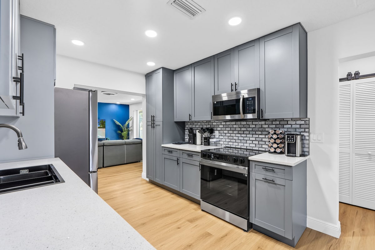 Escondido en una subdivisión de primer nivel, disfruta de esta cómoda casa con comodidades modernas, muebles nuevos, electrodomésticos, cocina completa moderna con platos y utensilios, lavadora/secadora, aire acondicionado central y piscina privada. Incluye acceso a Internet, ideal para trabajar a distancia, cable digital y acceso a Netflix. También se encuentra a poca distancia a pie de un parque familiar con gimnasio al aire libre, muelle público para barcos, costa y restaurantes y tiendas de comestibles Publix y Whole Foods.