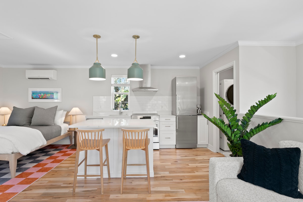 Welcome to this super nice 1 BR/ 1 (or 2) BA home 5 min. N of DT and 10 to beach. Fully remodeled, nicely furnished, solid block guest home with dedicated off-street parking at your door, fast Wi-Fi, Smart TV's, kitchen, private patio with gas grill, in a quiet walkable neighborhood, 3 blocks to a park with an outdoor gym. ADD 2nd Bath w 8 Jet Jacuzzi soak tub, bidet, vanity, and Washer/Dryer ($25 per day, $25 cleaning per stay). OR ADD just Washer/Dryer access ($15 single use).