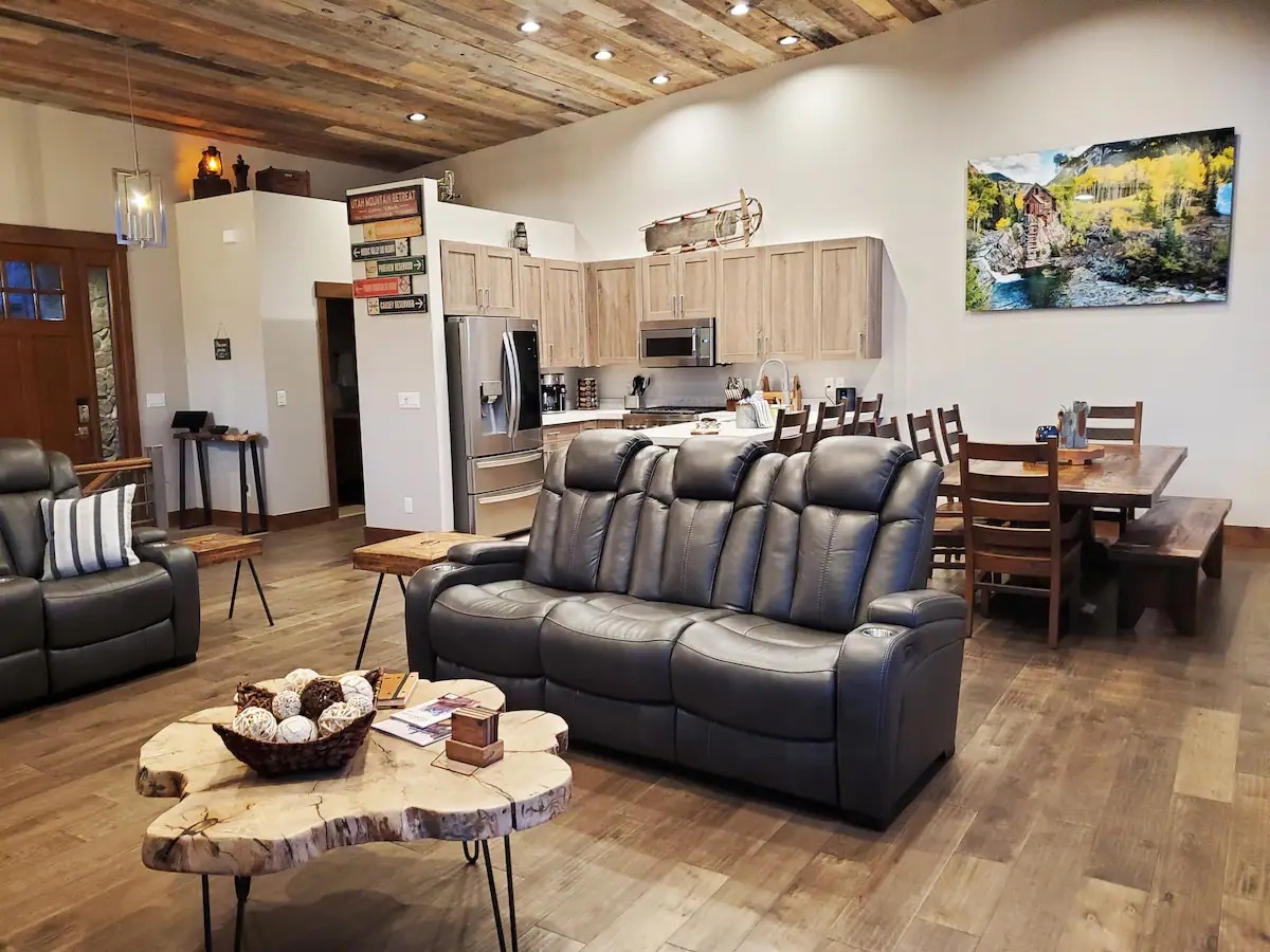 Retiro espacioso y familiar con encanto moderno de granja. Disfruta de una sauna privada, jacuzzi, chimenea, cocina completa y un gran patio con una cama elástica, perfecta para que los niños jueguen. Cuenta con 2 dormitorios acogedores, lavandería y un generoso estacionamiento. Ubicado cerca de la laguna, el centro de Ogden, estaciones de esquí, lagos, rutas de senderismo y parques todoterreno. Diseñado cuidadosamente para la comodidad, la diversión y los recuerdos familiares inolvidables.