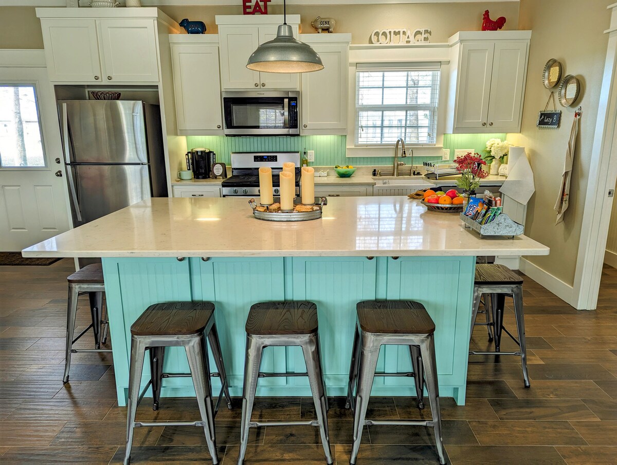 ¿Qué podría ser mejor que pasar tus vacaciones en First Monday Trade Days o simplemente escaparte? El Tiny Bluebird es una casa de campo de nueva construcción, decorada con mucho gusto y acogedora, ubicada en Willow Lake en Wills Point, Texas. A un tiro de piedra de la pesca, la natación o el kayak. Esta casa de campo bien pensada tiene suelos de baldosas de madera rústica multicolor en todas partes, que están acentuados con una hermosa iluminación. El baño principal tiene suelos de baldosas, lavabo de mármol blanco y ducha de baldosas a juego.