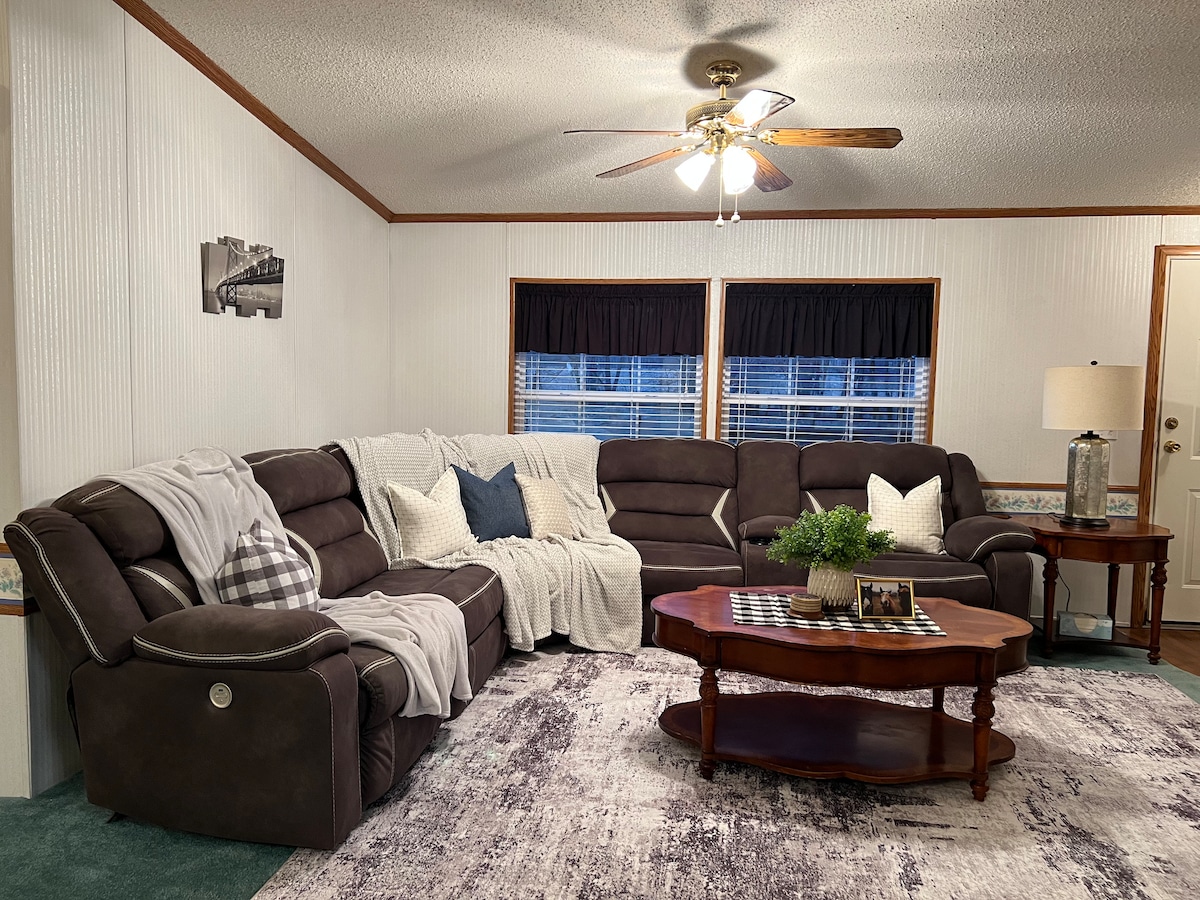 Relájate en nuestro bungalow de 2 dormitorios en el lago Harvey de 15 acres al sur de Linton, Indiana, en el límite del área de Goose Pond Fish & Wildlife, y a pocos minutos del bosque estatal Greene Sullivan. Perfecto para tu viaje de caza/pesca o para traer a tu familia para unas vacaciones tranquilas. Nuestro bungalow cuenta con 2 dormitorios, uno con 2 camas tamaño queen y otro con una cama doble, sala de estar, comedor, cocina totalmente equipada, 2 baños completos y una cochera adjunta.