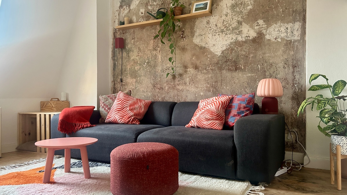 Encanto industrial en el corazón de Eimsbüttel. Nuestro loft amueblado con mucho cariño ofrece espacio para un máximo de 7 huéspedes, con las zonas de dormitorio en la habitación principal y dos dormitorios separados. La amplia zona del loft ofrece suficiente espacio para pasar un tiempo inolvidable y compartido en Hamburgo. La conexión Wi-Fi de alta velocidad, un televisor de gran diseño, un Acarde Pac Man y una videograbadora con muchos cintas de vídeo antiguas y queridas harán las delicias de los amantes del cine.