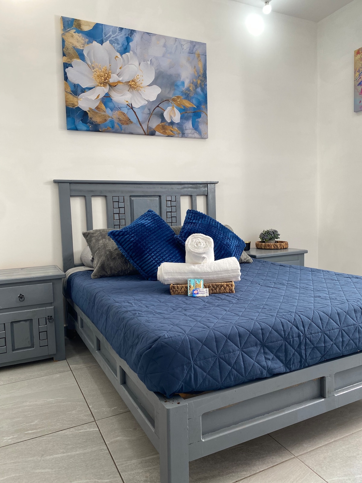 Hermoso Departamento con amplia terraza, limpio y muy acogedor. la construcción es nueva, así como los muebles que hay en su interior. el departamento es de concepto abierto, solo hay un biombo que separa el área del dormitorio con la sala, para dar un poco de privacidad. Hay un sofá cama, tamaño matrimonial, en la sala El departamento tiene amplias ventanas que brindan una excelente iluminación. y cuenta con una linda terraza, rodeada de plantas.