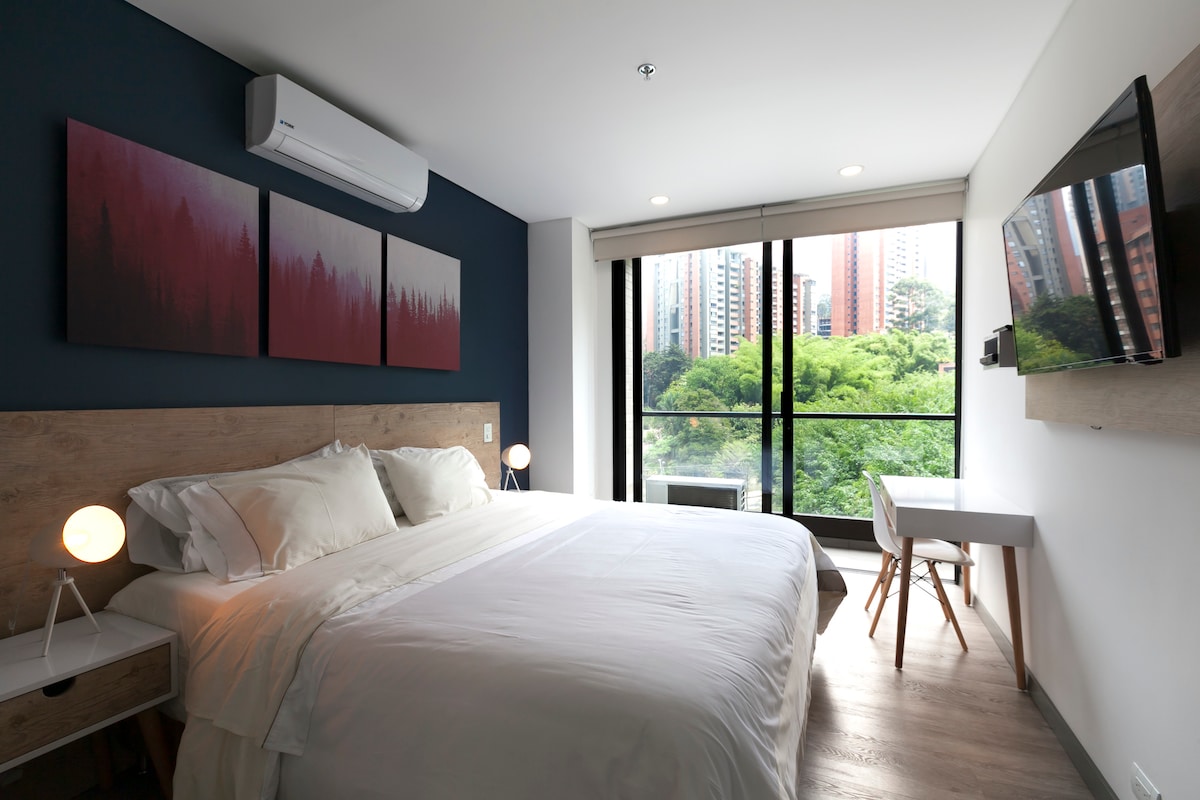 RENOVACIÓN RECIENTE :) -Internet de alta velocidad ideal para trabajo remoto -Aire acondicionado -Apartamento de diseño industrial totalmente renovado -Cama 2x2 -Impresionantes vistas de Medellín -Piso 19 -Ubicación inmejorable en Poblado cerca de Provenza y Parque Lleras -Modernas instalaciones -Amplia sala de estar -Smart TV x 2 -Cocina totalmente equipada -Torre Lavadora y Secadora independiente -Piscina -Gimnasio -Coworking -Restaurante dentro del edificio -Auto check-in -Seguridad 24/7