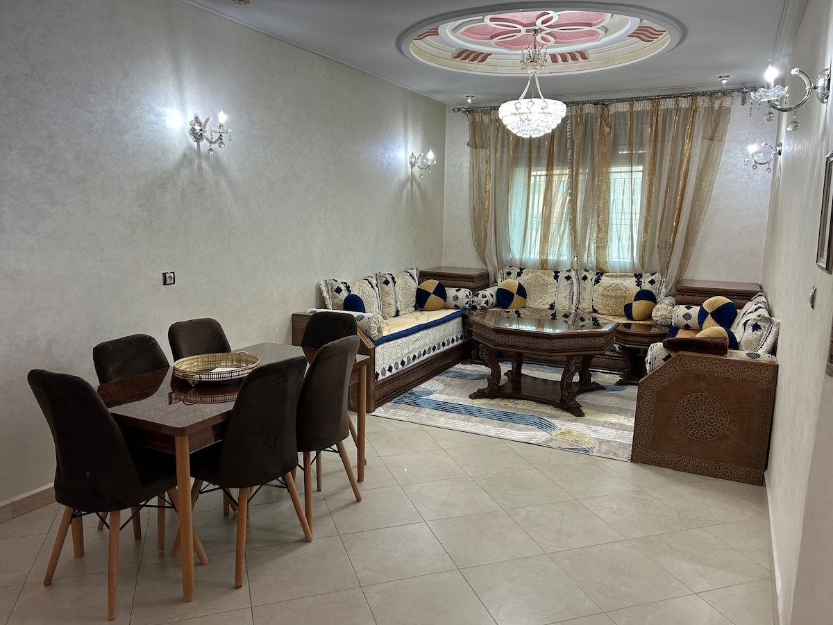 Bonjour à toi cher invité! Bienvenue dans ce charmant et paisible appartement rénové récemment et disposant de l'ensemble des équipements dont tu as besoin pour te sentir comme chez toi et passer un excellent séjour. - L'appartement est situé devant Bab El Kazdir un beau monument de la ville de Meknès. Ainsi qu'au centre de toutes commodités (restaurants, cafés, taxis, supermarché..) - L'appartement dispose d'un parking au sous sol - Equipement : SmartTV, Wifi, Chauffage, Clim ... à bientôt