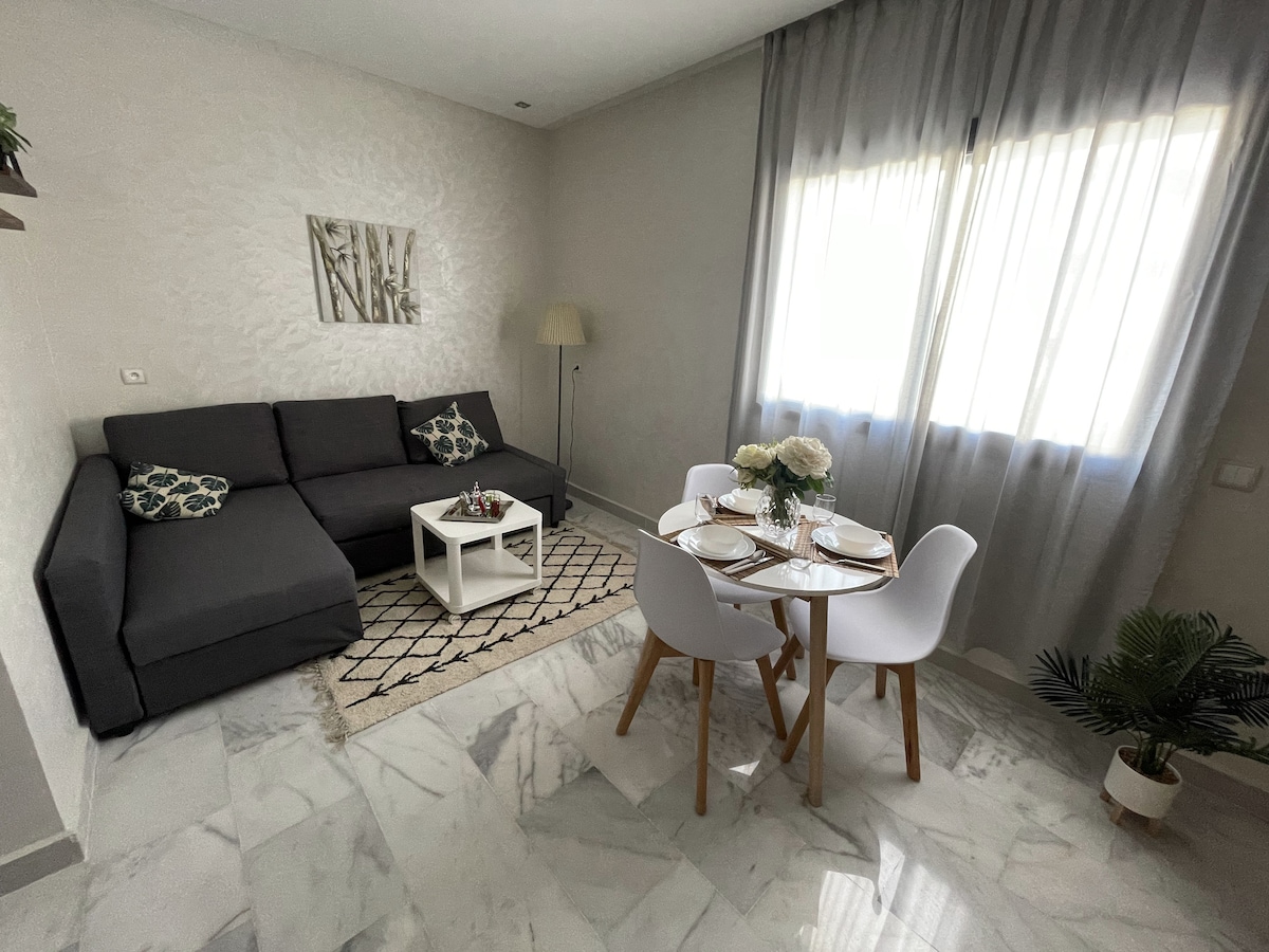 Ilova company is proud to offer this bright and fully equipped appartement on first floor of a quiet &secure neighborhood Mohammedia central. 5 mins drive to serene beaches & steps away from supermarkets, cafés, restaurants, train station, with easy access to major highways. Enjoy a modern living room with traditional Moroccan touch, fully equipped kitchen, balcony, 100 Mbps fiber-optic Wi-Fi, and adedicated workspace, perfect for remote workers. Free and secured parking is available. Book Now