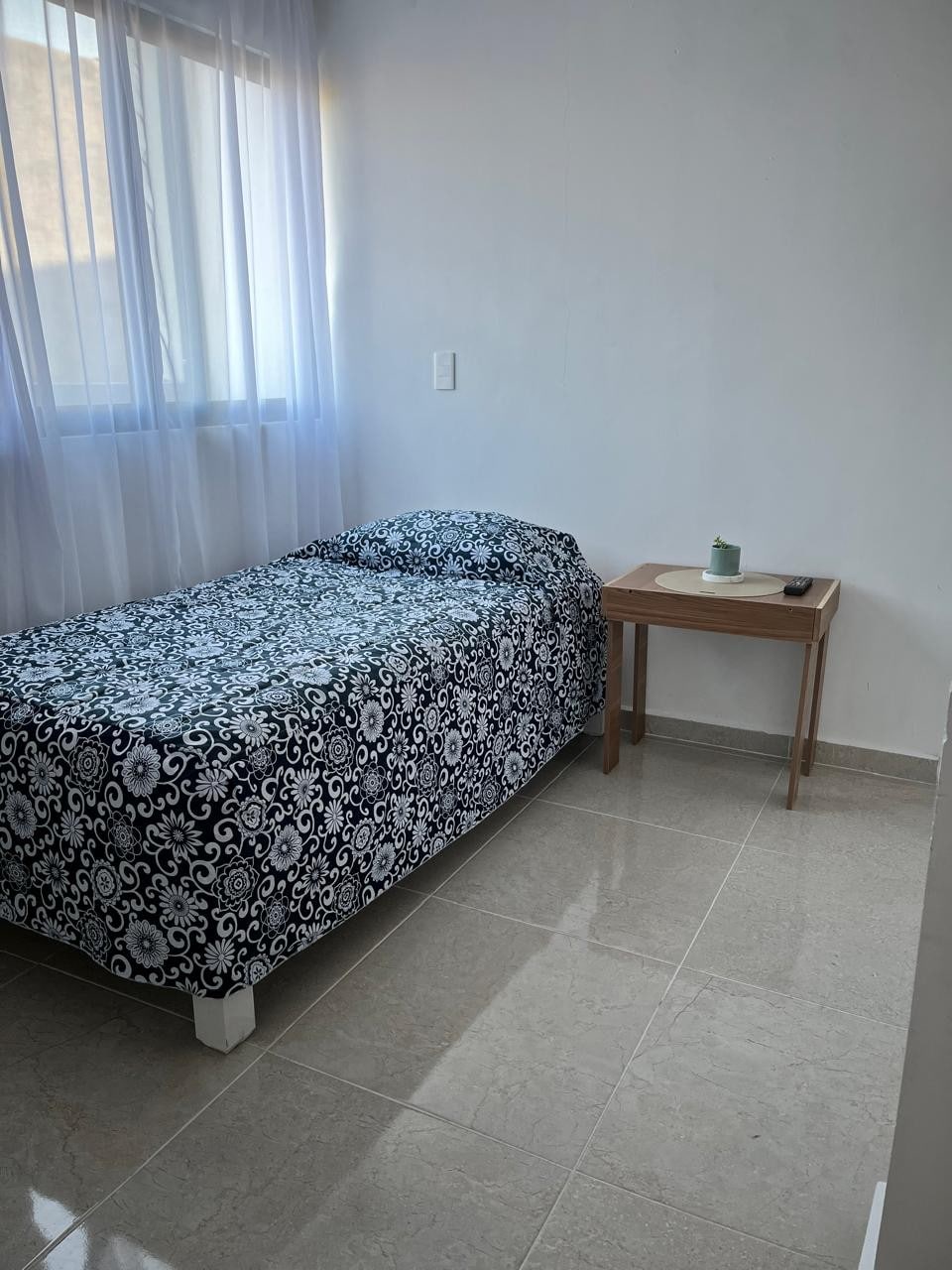 Departamento completo ideal para disfrutar tu estancia en Qro. Habitación muy amplia, cuenta con mini split, TV, clóset, 2 silloncitos y espejo de cuerpo completo. La cocina está equipada con: parrilla eléctrica, microondas, licuadora, cafetera, refrigerador, vajilla para 4 personas, y accesorios básicos para uso de la cocina. 1 baño completo (se utilizan paneles solares para el agua caliente), incluye: jabón para manos, shampoo, jabón corporal, toallas, secadora p/cabello y plancha p/ropa