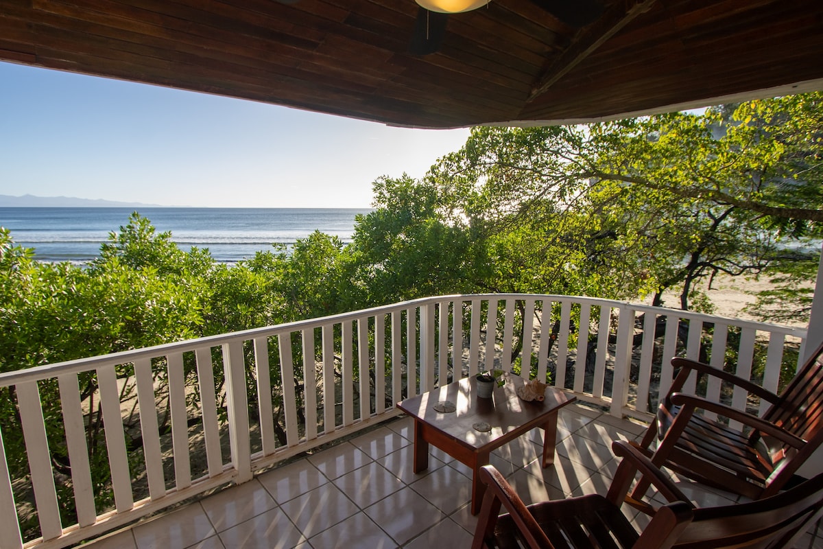 FRENTE A LA PLAYA 2do piso gran villa con terraza. 3BD/2BA. Duerme 7 cómodamente. El dormitorio principal tiene una nueva cama king size con baño privado. La segunda habitación tiene dos gemelos y la tercera habitación ofrece una cama queen y otra doble, lo que hace que todo el espacio sea amplio. La cocina está completamente equipada. Las villas tienen una piscina y una sala de estar exterior. Hacienda Iguana es una comunidad privada cerrada de GOLF. Catering está disponible - diferentes opciones de comida - hacemos TODAS LAS compras de comestibles, cocina y limpieza!