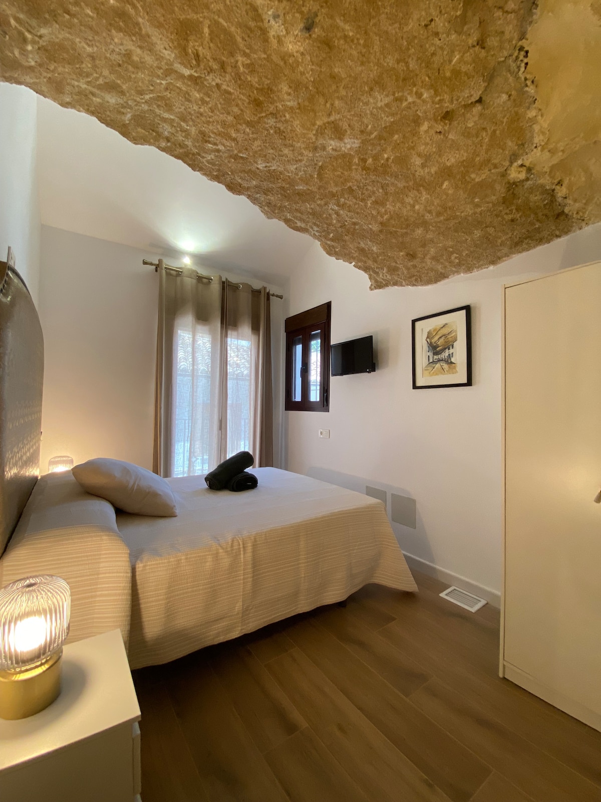 Vive una nueva experiencia en una casa cueva, en uno de los pueblos más bonitos y pintoresco de España. Siéntete como un antiguo troglodita pero con todas las comodidades de hoy en día ( camas extra grandes, ducha agua caliente, wifi gratis, televisor en las habitaciones….) Hay 2 dormitorios con camas de 1,50cm. Pero cuando se reserva para dos huéspedes solo estará abierto uno de ellos. Si son 3 o 4 huéspedes los que reservan si estarán las 2 habitaciones abiertas.