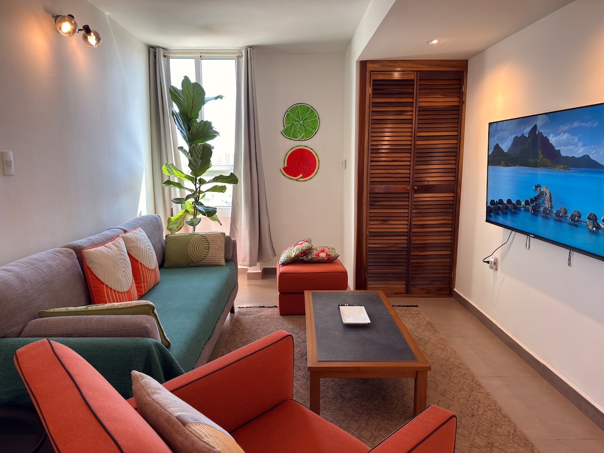 Este apartamento está en mezanina, solo hay que subir 5 escalones y llegas al apartamento, es para 2 personas más 1 adicional ya que cuenta con sofá cama, se encuentra a pasos de la playa, tiene una ubicación genial, ¡será muy fácil planear tu visita! Cuenta con 1 habitacion y 1 baño, tiene agua las 24 horas del día ya que el conjunto cuenta con pozo subterraneo, aire central, tienes tostadora, airfrayer, mini hornito. Querrás venir una y otra vez. super recomendado.