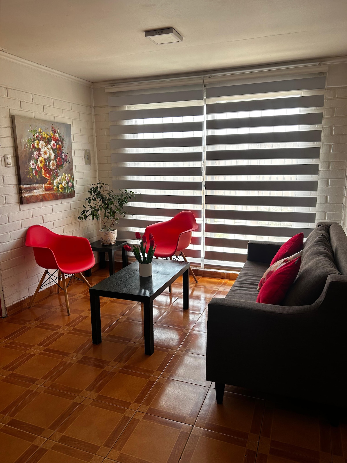 Disfruta de la sencillez de este alojamiento tranquilo y céntrico. Cada rincón está decorado con mucho amor y dedicación para que puedan disfrutar de esta estadia . El condominio es grande cuenta con ciclovías , muchas áreas verdes , piscinas , Quinchos , cine , multi cancha, gimnasio y juegos para los pequeños . Esta ubicado a 2 min. del mcdonals A 5 min del supermercado acuenta y tottus a 7 min del unimarc e lider. 10 min. en auto de la playa y mall. Locomoción a una cuadra. No te arrepentirás