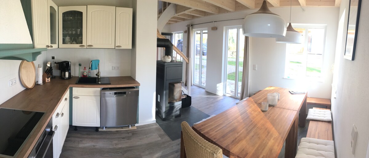 Os invitamos a nuestra hermosa casa de vacaciones con aproximadamente 80 metros cuadrados de espacio habitable y terraza. La cocina totalmente equipada con comedor contiguo, 3 dormitorios (planta baja/ático) y una acogedora sala de estar invitan a quedarse. Además de un moderno baño (planta baja) con ducha, bañera, calefacción por suelo radiante y secador de pelo, también hay un aseo separado (planta superior) a su disposición. Para los más pequeños, hay una cama elástica, un columpio, un arenero, una casa de juegos con tobogán y un parque infantil en el jardín.