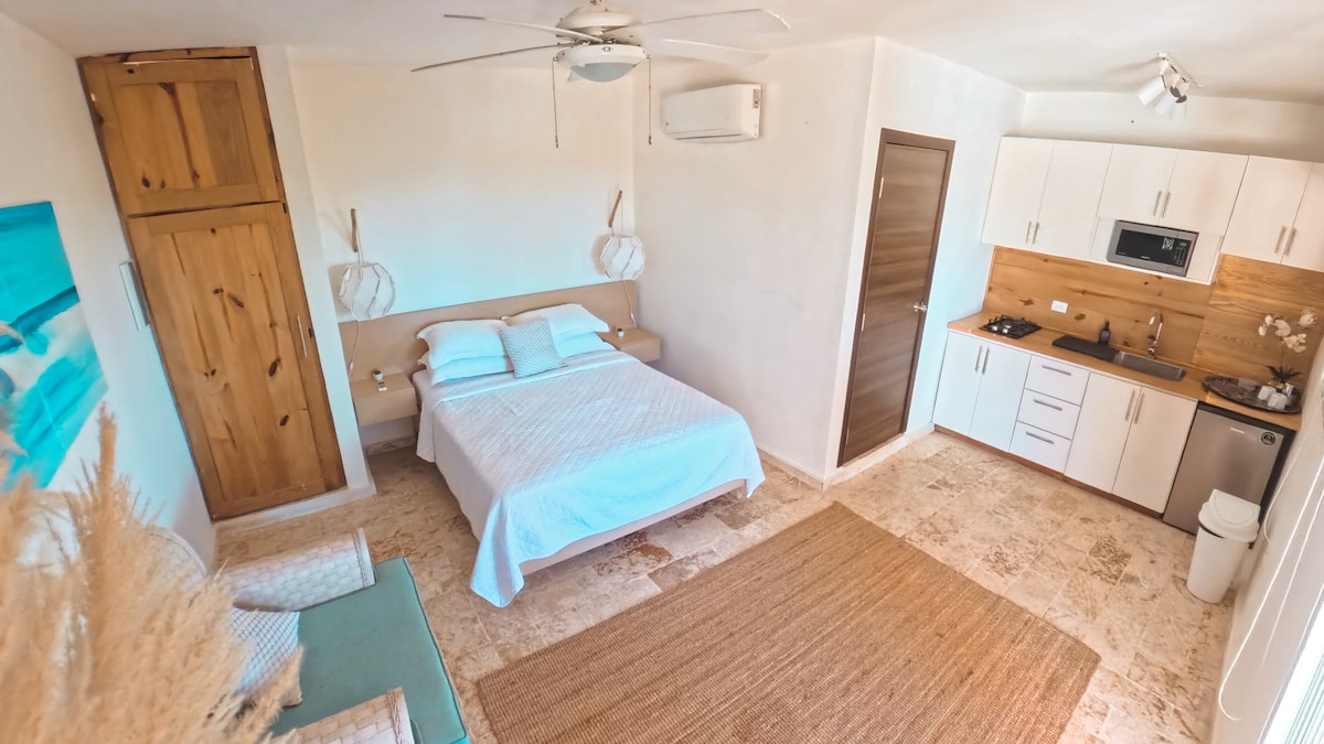 Welcome to your tropical retreat in Playa Encuentro, one of the most charming surf spots. This cozy studio apartment offers the perfect blend of relaxation and island lifestyle. Located in a villa with a large swimming pool, guests enjoy shared access to the pool and an outdoor shower. The studio includes: fully equipped kitchenette private bathroom Air conditioning Whether you’re planning a surf trip, a peaceful getaway, or a remote-work stay in paradise, this studio offers comfort & privacy.