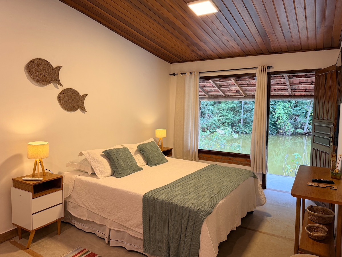 En medio de la naturaleza, el Sítio Água Boa ofrece un espacio acogedor para descansar y relajarse, ¡escuchando el canto de los pájaros! Podrás disfrutar de la piscina de agua natural directamente de la fuente, mientras admiras la belleza del lago y el bosque que rodea la propiedad. A la llegada, se ofrece a los huéspedes un delicioso desayuno con delicias del campo, como cortesía de la anfitriona.