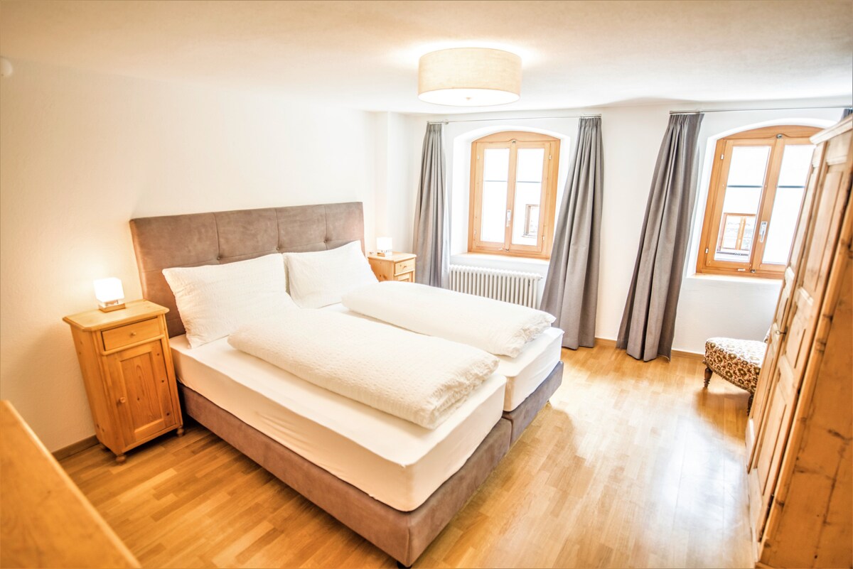 Tu nuevo departamento en el centro de la Reserva de la Biosfera Val Müstair y el Parque Nacional Suizo. Tu departamento de vacaciones está en el recién renovado Münsterhof en Müstair. Recepción ocupada, ascensor, sala de esquí y bicicleta, alquiler de trineos, accesibilidad, cocina totalmente equipada y wifi gratuito.