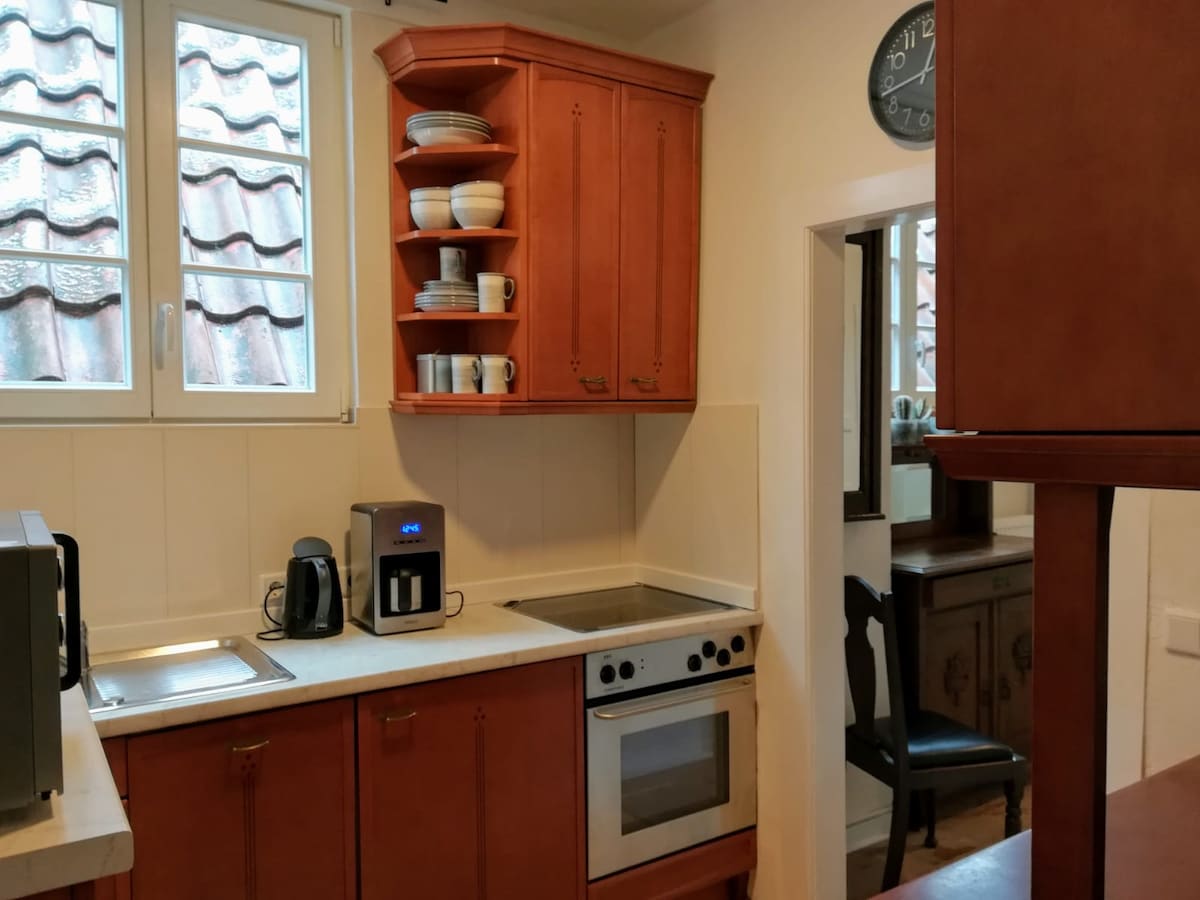 Das Dachappartement ist ideal für Gäste, die auch für längere Zeit eine einfache, praktische und günstige Wohnung suchen. Die Wohnung ist 23 Quadratmeter groß. Sie ist komplett eingerichtet, hat einen Glasfaser-Internetanschluss und einen Fernseher. Die Wohnung im zweiten Obergeschoss befindet sich in einem Mehrfamilienhaus mit zwölf Wohnungen (Baujahr 1958) mit einem entsprechend einfachem Umfeld.