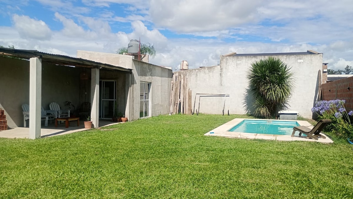 Espacio ideal para relajarse y disfrutar de la tranquilidad. La propiedad cuenta con pileta con playa humeda y reposeras. Parrilla equipada, sillones, mesa y sillas de exterior. Cocina totalmente equipada. Ropa de cama y toallas incluidas. WIFI. Aire acondicionado en la habitación. Cama de dos plazas +sillon divan cama (se transforma en dos camas individuales) Ubicada en una zona tranquila, a una cuadra y media de Av Illia y 10 minutos caminando del Corsódromo.