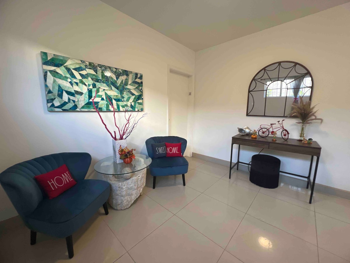 Bienvenidos a nuestro lujoso y cómodo condo, diseñado para dar una experiencia de 5 estrellas a parejas y grupos. Tenemos aire acondicionado, Wi-Fi de alta velocidad, café y snacks complementarios, y mas. La cocina esta equipada y la sala tiene una televisión de 65", ideal para relajarse. Los dos cuartos ambos tienen televisión y closets amplios. La unidad tiene un baño completo con regadera de cascada, y cuarto de lavar con lavadora y secadora. Incluye estacionamiento privado.