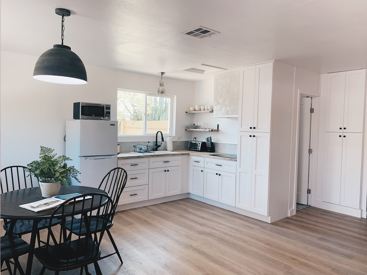 The Studio at Maple Ash is your private retreat—located in the iconic Maple Ash Neighborhood, one of Tempe’s most historic and walkable districts. Ideal for Spring Training fans, ASU visitors, snowbirds, and couples. Unwind in the fully enclosed yard with a fire pit, lounge seating & outdoor dining. Walk to ASU, Gammage, Mill Ave, festivals at Tempe Beach Park, and catch games at nearby Cactus League stadiums. Just 10 mins to Sky Harbor.