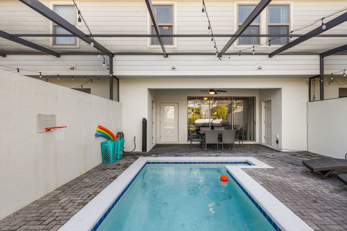 SOL SOL. Sol todo el día con nuestra GRAN terraza privada. Recientemente agregamos golf putt putt. También Cornhole 🎉 Cesta de bienvenida de cortesía con golosinas dulces y saladas incluidas en cada estadía. Jacuzzi, pileta privada, patio grande completamente cercado. Una sala de juegos con mesa de billar, dardos, juego de arcade y, recién agregada, una máquina de pinball electrónica, también hay un tocadiscos retro. A 4 millas de Disney. Temática de Disney, cama king, cama queen y camas individuales, gran patio vallado para perros