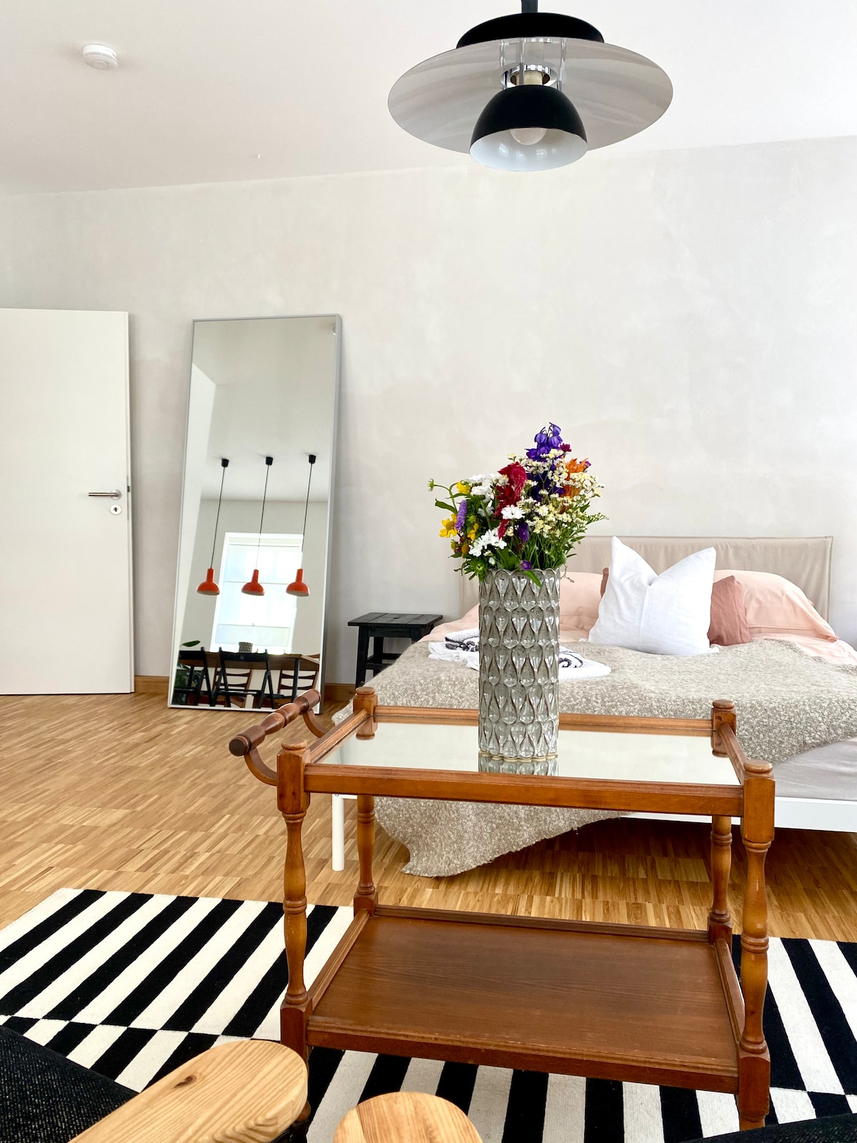 Das ca 40 Quadratmeter große Portraetzimmer ist nun seit August 24 saniert. Hier findet ihr einen individuellen Ort an dem ihr euch wie zu Hause fühlen könnt. Gemütlich, mit besonderem Stil, liebevoll dekoriert und eingerichtet. Das Appartement ist ideal für euren Städtetrip, Kurzurlaub und für Berufspendler. Das Portraetzimmer liegt in Mitte der Erfurter Altstadt, Nähe des Domplatzes. Erfurter Dom, Kaufhalle, Bars, Bistros und Kunst liegen direkt vor der Tür. Wir freuen uns auf euren Besuch!