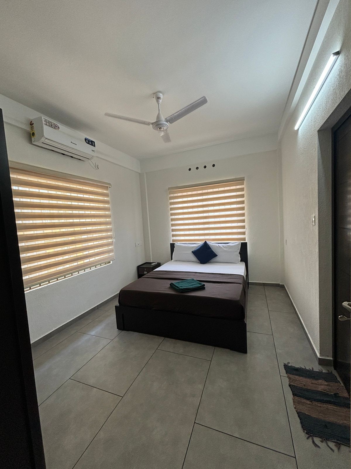 A spacious and centrally located 3-bedroom home on the second floor, designed for comfort, privacy, and convenience. The living room features a 43-inch Smart LED TV, a 5-seater sofa —ideal for movie nights or relaxing after a busy day. Large windows bring in natural light and create a warm, welcoming atmosphere. - Three air-conditioned bedrooms with king-size beds. - Attached bathrooms with hot & cold showers. - Smart LED TVs in all bedrooms. - Fresh linens, pillows, and essentials provided.